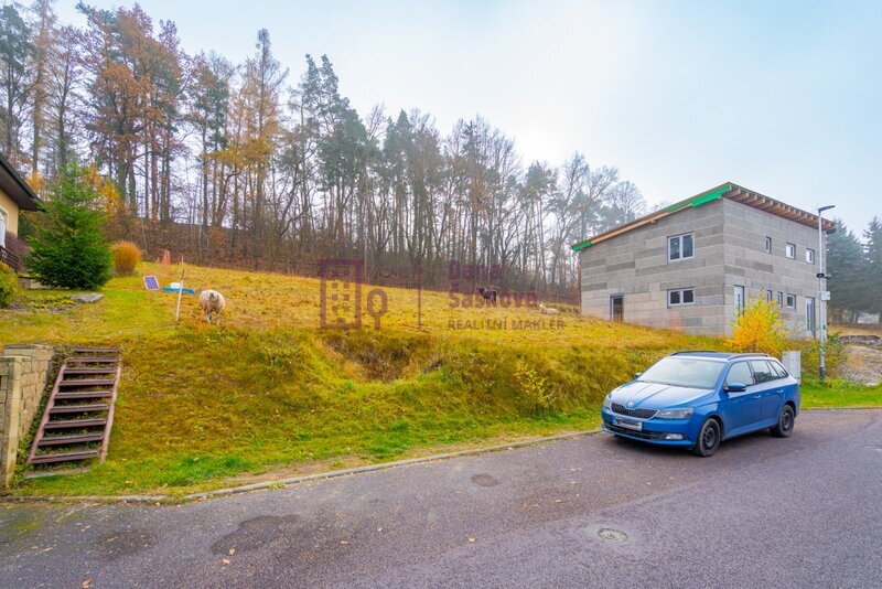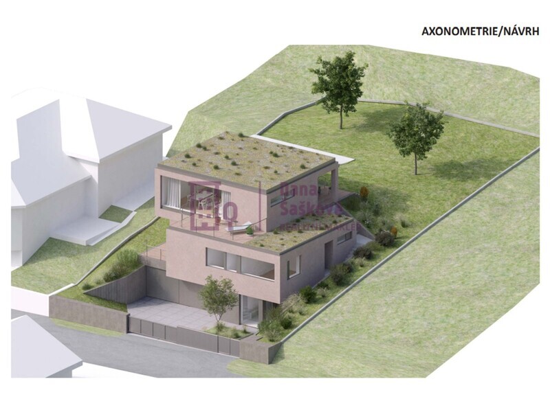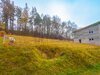 Pozemek je umístěn v kopci a je tak mírně svažitý, z oken budoucího