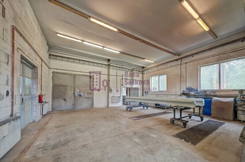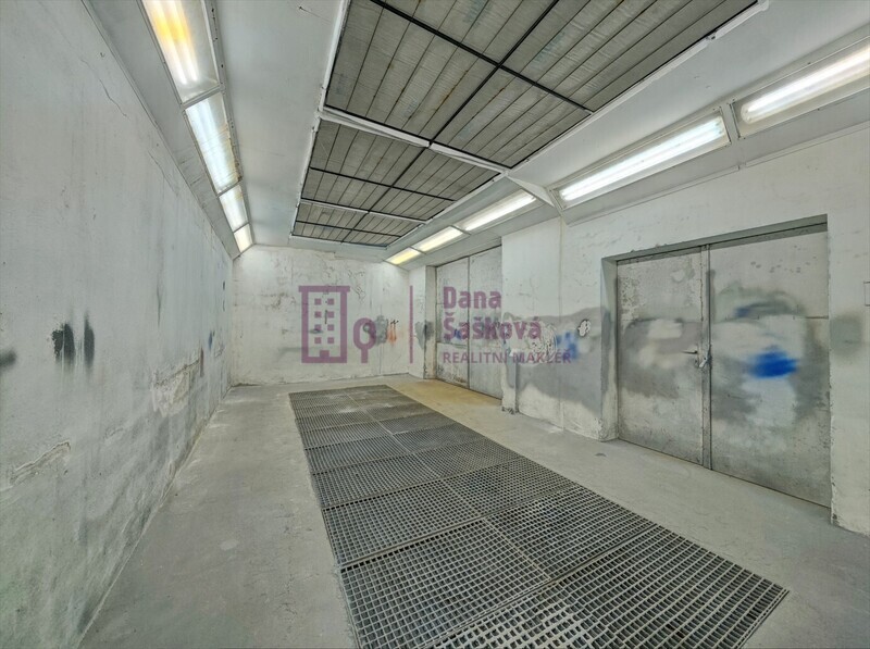 lakovna a sušárna. Je osazen sekčními vraty, nejnižší výška stropu je