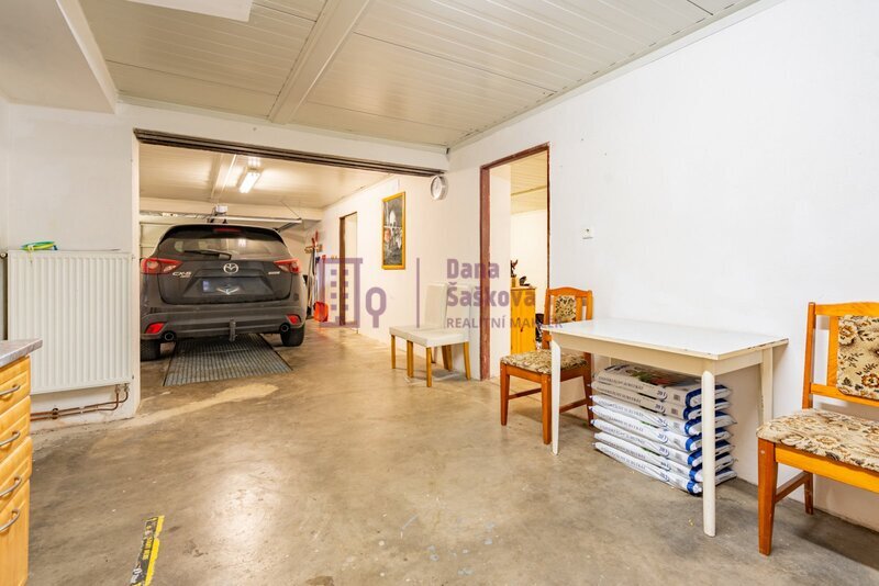 V suterénu o ploše 120 m2 se nachází 2 velké garáže, prádelna, WC,