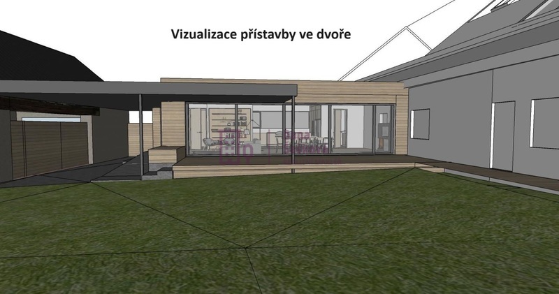 Obytná část domu nabízí prostornou dispozici 5+1, dvě koupelny, technickou