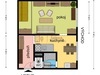 Dispozice 1+1 nabízí předsíň s vestavěnými skříněmi, kuchyni