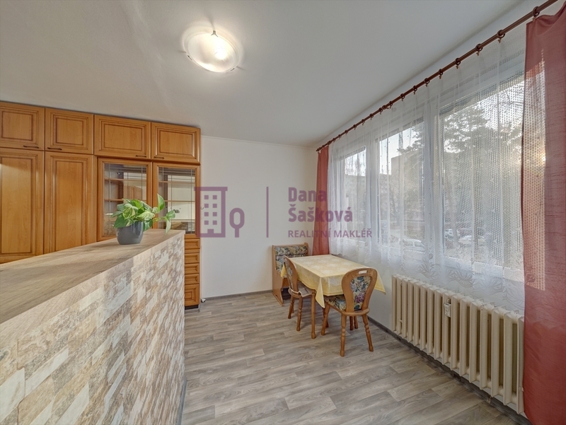 Byt orientovaný na jihovýchod je vybavený kuchyňskou linkou s barovým