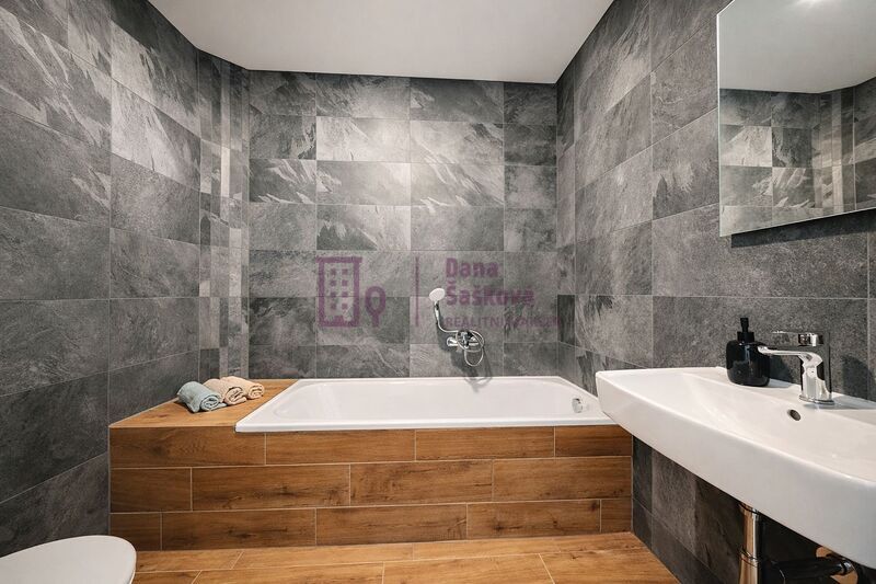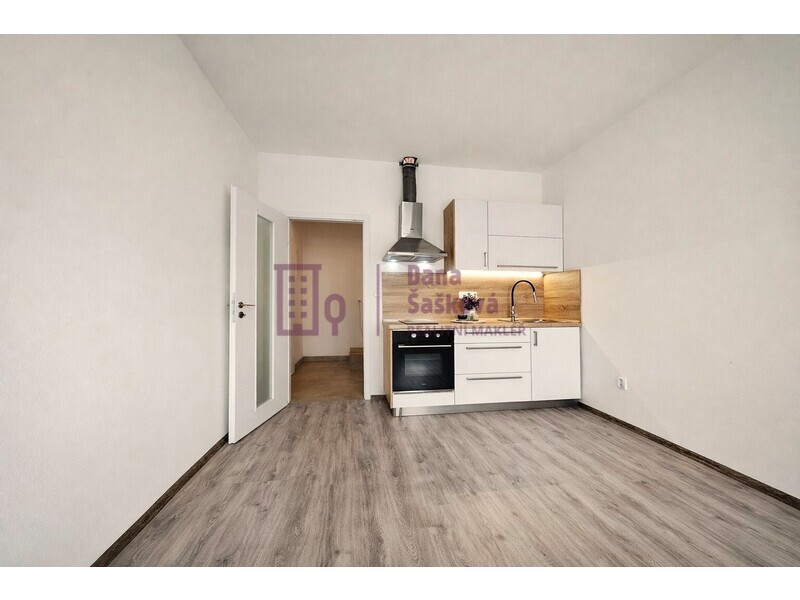 Dispozice 1+kk nabízí vstupní chodbu, koupelnu s vanou a toaletou a pokoj