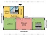 pokoj, koupelnu se sprchovým koutem, samostatnou toaletu a dvě ložnice.