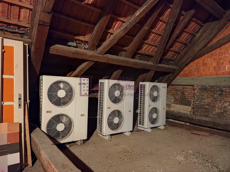 Vytápění řešeno el. akumulačními kamny, v prostorech je také rozvedena
